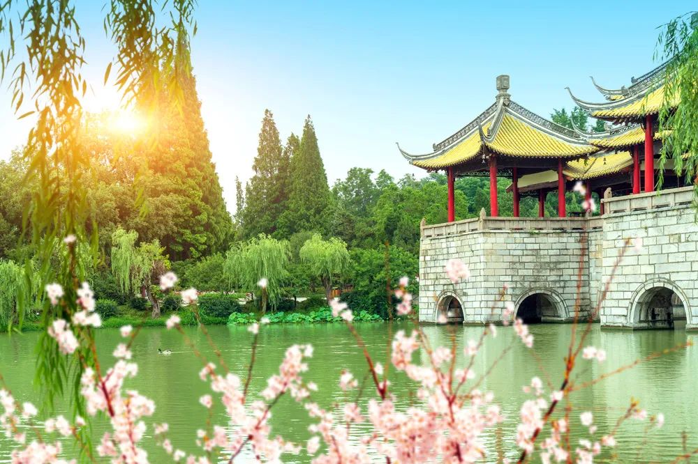 早指定时间服务区集合后分发手台、物料,领队开出发说明会后出发,高速服务区午餐后,自驾前往扬州瘦西湖游览。开始我们诗情画意的李白寻踪之旅。赏湖光山色的扬州第一名胜,湖面秀丽似西湖但形略显瘦而得名【瘦西湖】。两堤花柳全依水,一路楼台直到山。悠然信步其间,风姿绰约。一线可观二十四桥、虹桥、五亭桥、白塔晴云等景点;