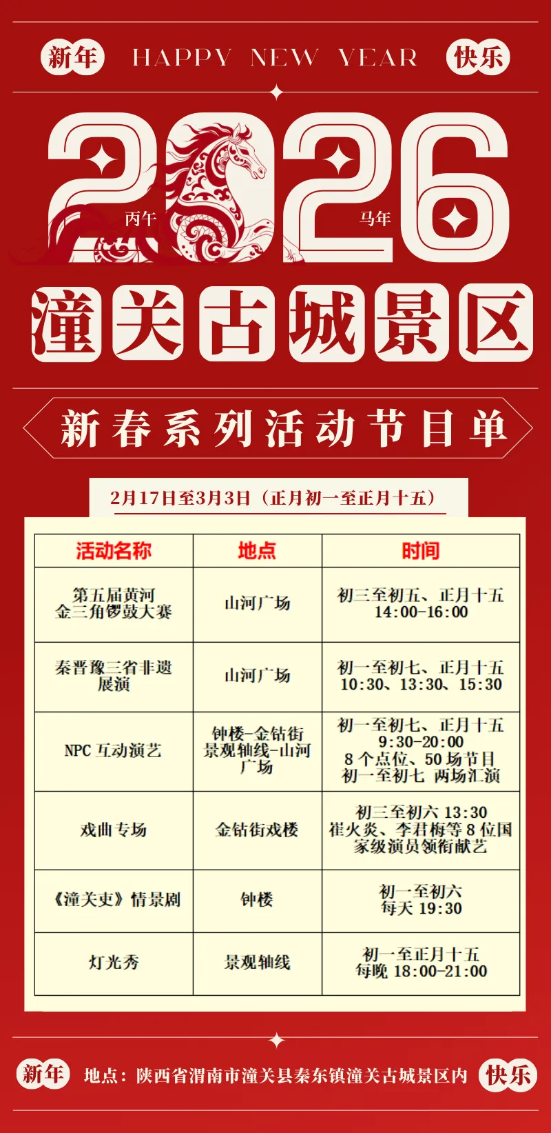潼关古城景区2026年春节系列活动公告,附新春五大活动内容安排