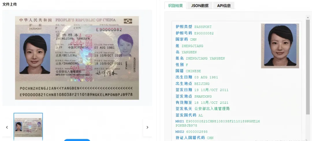 多国护照兼容性强:系统支持190余个国家和地区的护照识别,涵盖MRZ机读区、个人信息页等多种格式,无需人工干预即可自动适配不同版式。 高识别准确率:依托深度神经网络模型,系统在复杂光照、轻微污损、角度倾斜等非理想条件下仍能保持98%以上的字段识别准确率。 毫秒级响应速度:从图像输入到结构化数据输出,整个过程可在500毫秒内完成,大幅提升业务办理效率。 端云协同部署:支持本地化部署与云端API调用,兼顾数据安全与系统灵活性,满足不同客户的安全合规需求。