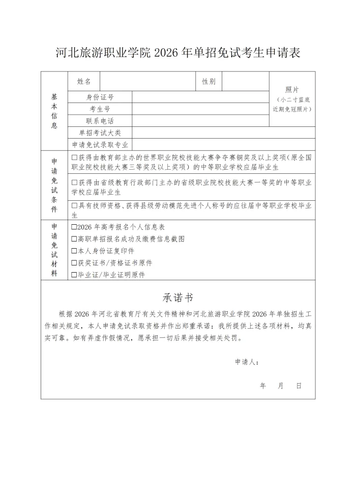 河北旅游职业学院2026年高职单招技能拔尖人才免试录取申请公告