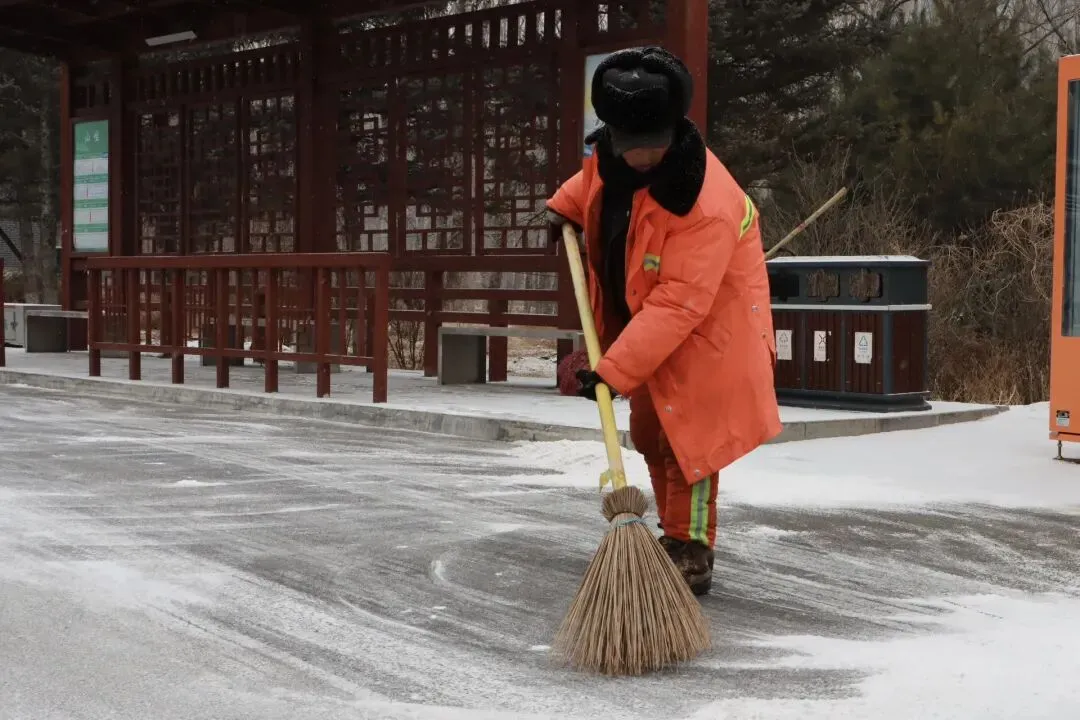 图说五台山|五台山景区降瑞雪 环卫工人清雪保安全