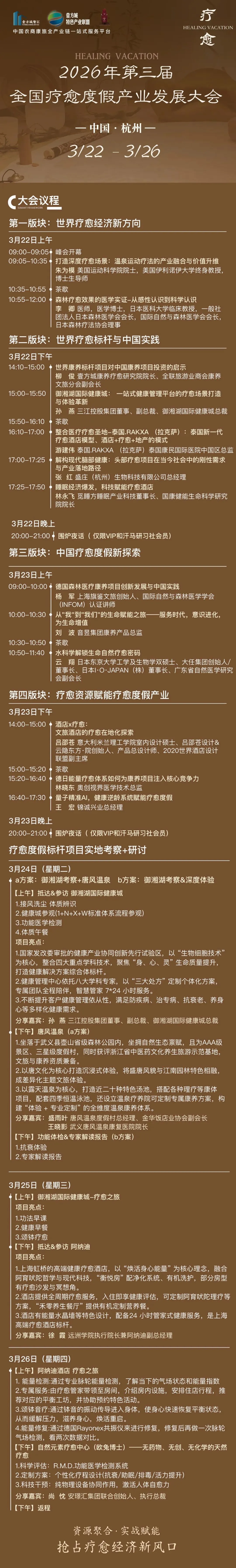 ●👉【3月22-26日 第三届杭州·全国疗愈度假产业发展大会】(2天峰会+3天考察)