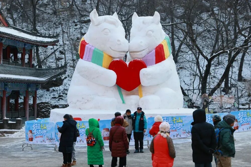 体验焕新:“活山水”与“热体验” 如果说详尽的服务规范是为千山景区“强筋健骨”,那么真正打动人心的,是基于标准打造的“活山水”与“软文化”,让游客在亲身经历中转化为动人体验与温暖感受。 远看雪落群山,近观玉树琼花。“好运千山·雪人总动员”2026年千山雪人节拉开帷幕,这座被誉为“东北明珠”的灵秀之地,瞬间变身欢乐沸腾的冰雪乐园。 当记者跟随“质品行动”拍摄团队踏入千山景区,满眼是粉妆玉砌的世界,从景区正门延伸至桃花溪谷的3.5公里核心游览带上,13组、100余个造型各异的雪雕惊艳亮相。 在千山景区正门处,“2026见者好运”主题雪雕十分抢眼,这是以“财神小梨仙”形象为蓝本打造的巨型雪雕,为游客带来新年的好运气。同时,结合马年文化特色设计了“马上脱单”“马上有钱”雪雕,精准契合年轻消费者的社交需求,成为爆款打卡地。 皑皑白雪覆盖的群峰在阳光下熠熠生辉,古寺石阶配上飘舞的雪花,身着彩色羽绒服的游客们或举家同行,或好友相伴,与桃花溪谷的冰瀑玫瑰景观合影……看到雪塑群峰的情景,来自上海的游客王女士忍不住赞叹:“太震撼了!没想到东北的冬天能这么美!” 沿着游览动线前行,在财神庙、无量观广场、云潭等核心点位,“小梨仙雪人家族”雪雕会萌趣登场,憨态可掬的造型令人忍俊不禁。千山景区还打造了用围巾帽子装饰的雪人矩阵,以及小松鼠、招财猫、小海豹等卡通萌趣雪雕,营造出浓厚的冬日童话氛围。 千山之美,不仅限于自然的鬼斧神工。张朋表示:“我们以‘辽宁优品’标准打造产品,不仅提供优质服务,更注重文化内涵的融入。” 为了让沉睡千年的文化“活”起来,千山景区设计了丰富的沉浸式文化体验飞龙桥踏雪寻梅的红楼幻境,到黛玉故里的那一缕乡情——这里不只是一处风景,更是一场跨越文字与影像、连接过去与现在的梦。 与此同时,政企携手送出“消费大礼包”,让说走就走的冰雪运动之旅触手可及。今年1月,为助力辽宁“九九消费季”活动,千山景区推出限时门票49元等打折优惠,为广大游客送福利。 这些“热体验”都成为连接游客与千山情感的“记忆符号”,让旅程的每一刻都充满惊喜,让文化的魅力可感、可触、可回味。