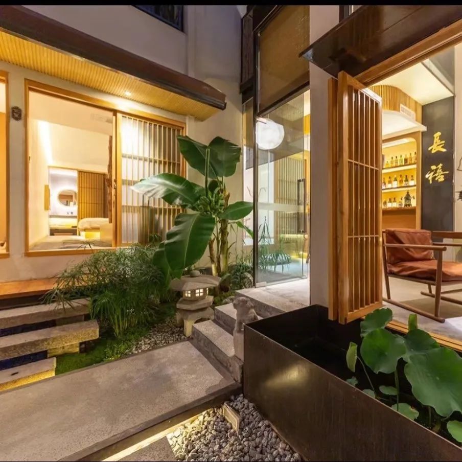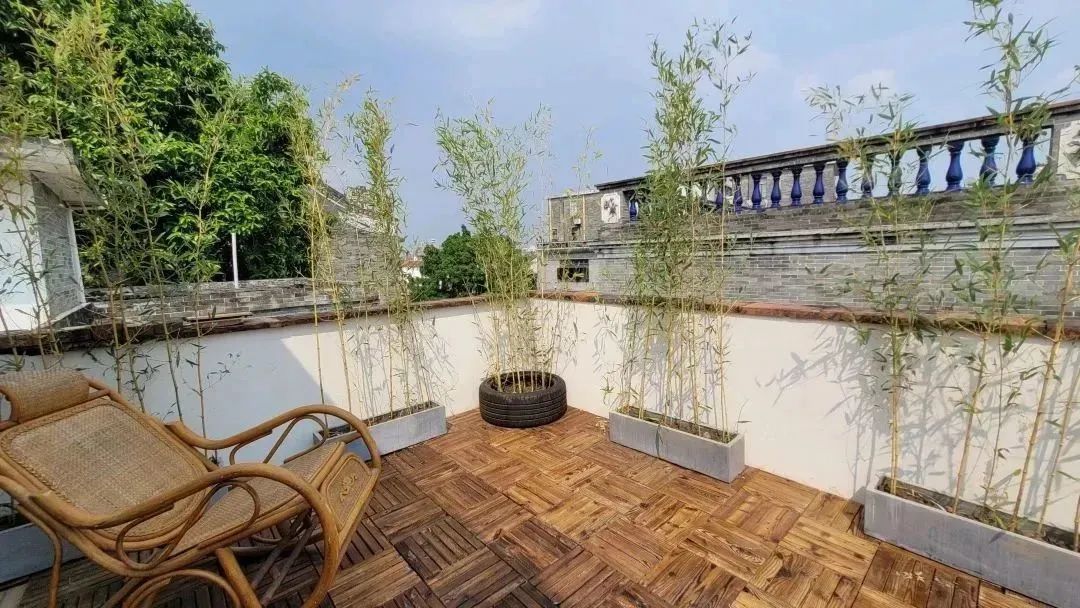 院落不大,岭南风格的小院设计,小而雅致。抬头就能看到满满的蓝天白云,暖暖的阳光洒在院子里,让你陪感舒适。