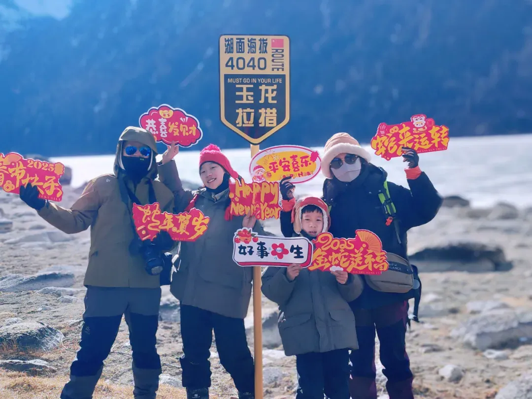 漫步玉龙拉措的环湖步道,景区特别定制的花样打卡牌助你拍出朋友圈C位大片!湖光山色与新春元素的完美融合,每一处都是拍照的绝佳背景。记录下这份美好,让新春的每一刻都闪耀光芒!