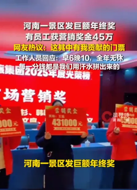 景区发巨额年终奖,有员工领到45万,让人羡慕