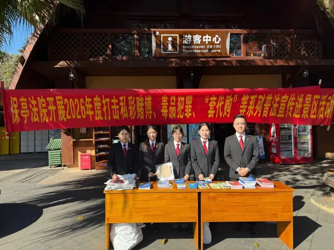 “所有‘稳赚不赔’的网购刷单都是诈骗!”“非法套贷购会让你债台高筑!”2月5日上午,保亭法院、金江法庭的干警,在槟榔谷景区游客聚集区域设立法律咨询服务台,向来往游客和居民普及法律知识。