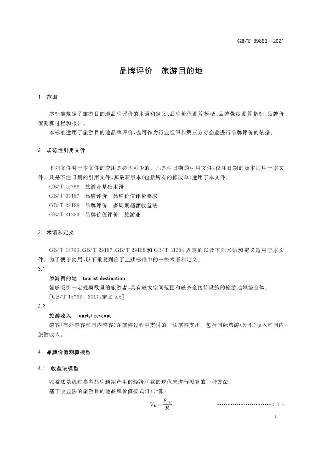 GB/T 39869-2021旅游目的地品牌评价