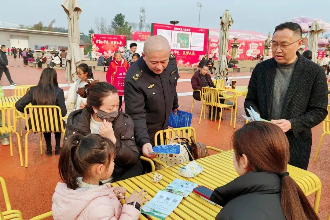 随着第32届自贡国际恐龙灯会璀璨启幕,大安区文旅消费迎来新一轮热潮。为进一步规范旅游市场秩序,提升旅游服务质量,切实保障游客合法权益,2月5日,大安区文化广电旅游局联合大安区人民法院、大安区市场监管局,在彩灯大世界景区开展旅游普法宣传暨市场秩序整治现场活动,主动服务旅游旺季,助力文旅市场健康有序发展。