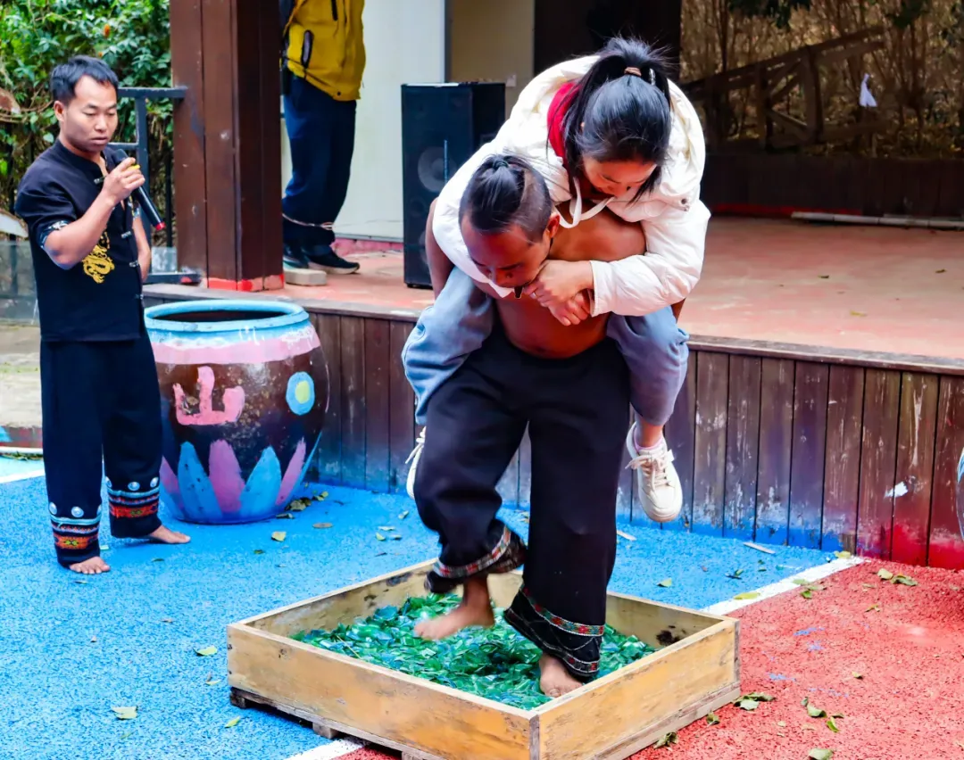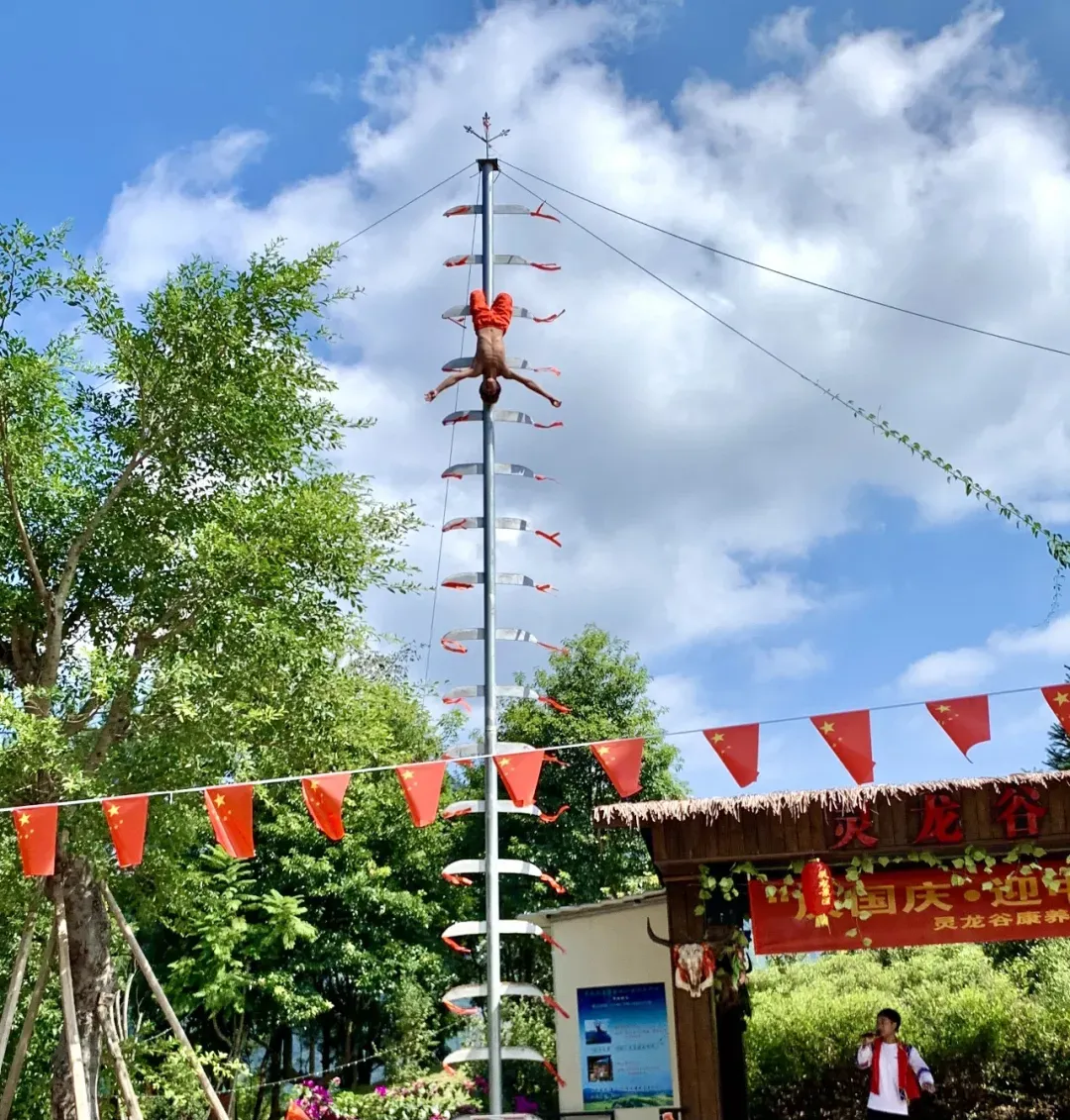 白天的灵龙谷也会推出精彩纷呈的非遗演出演出内容包括佤族传统舞蹈、惊险的上刀山表演炫目的喷火秀、挑战极限的踩玻璃表演以及富有特色的竹竿舞等