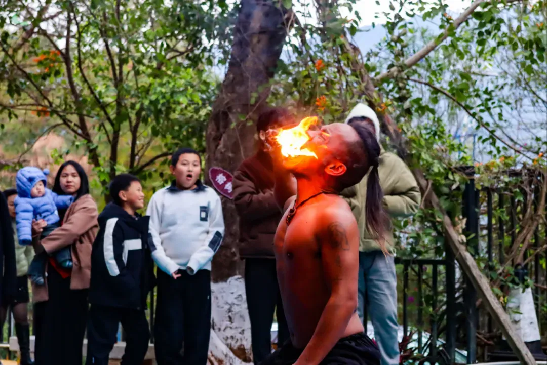春节期间每天都有!精彩的喷火绝技表演,梦幻般的舞台演出,刺激惊险的赤脚上刀山,扣人心弦的赤脚踩玻璃,可亲有趣的团结舞,在灵龙谷景区都可以体验一回!