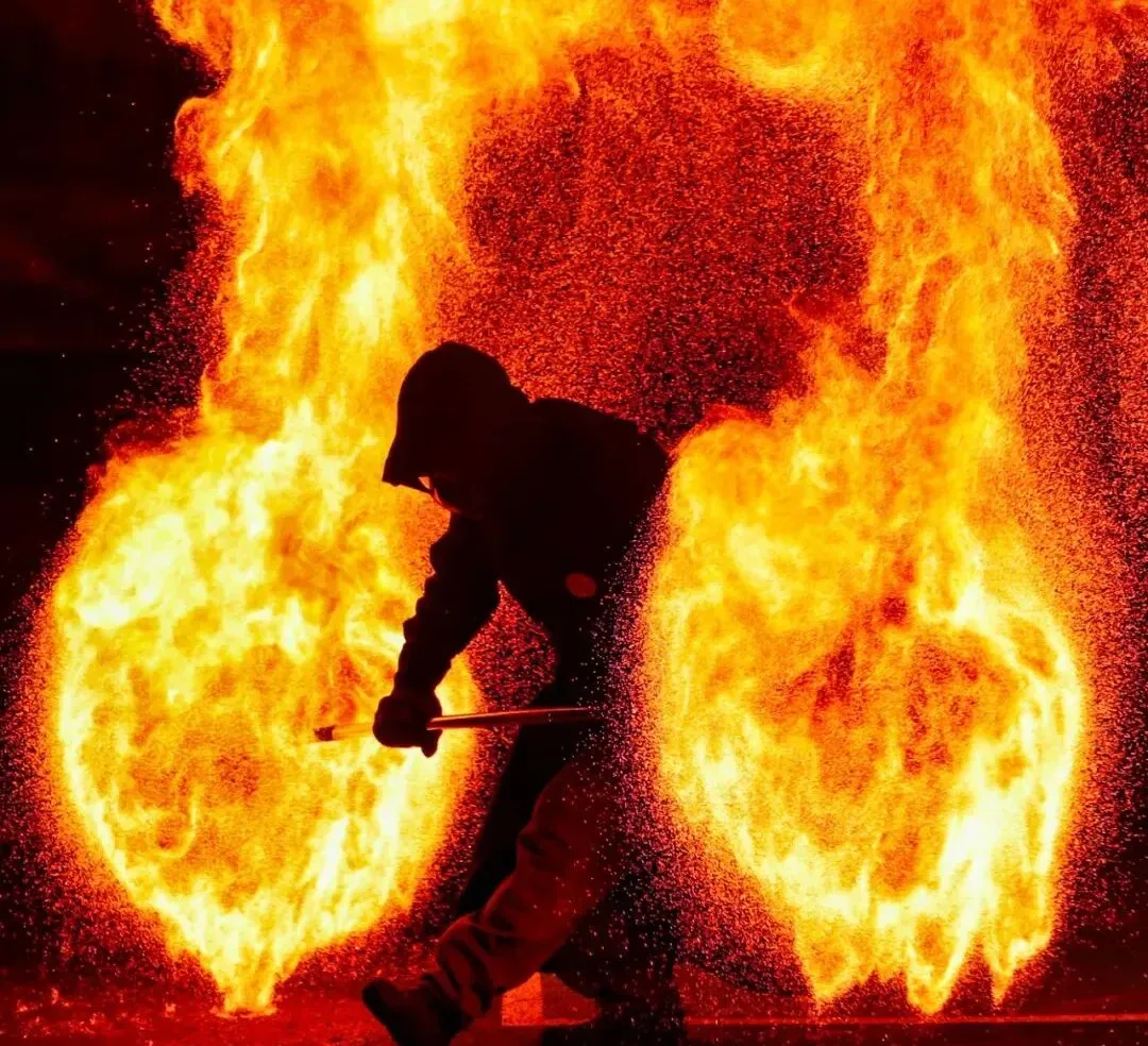 非遗打铁花火壶表演