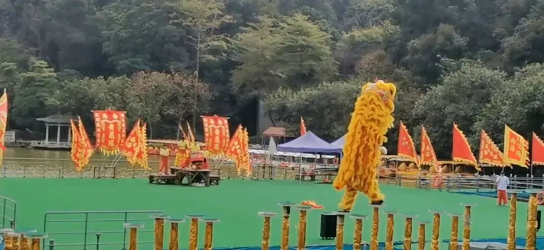 参拜完观音法像后我们来到天湖公园,天湖公园水上舞台每天都有三场舞狮表演,我们刚好赶上了14:00那场,表演活灵活现,每个动作都细腻而传神,将狮子的灵动感展现得惟妙惟肖。最精彩的要数跳梅花桩,狮子们纵身跃起,在桩间腾挪跳跃,如履平地。它们时而高高跃起,时而俯身低伏,时而转身腾挪,动作敏捷而矫健。观众们欢呼雀跃,掌声如雷,现场气氛热烈极了。表演结束,沿着天湖绿道走一圈。在鸳鸯亭附近,有两排落羽杉伸入湖中,拍照很出片。往九曲桥方向走,有一片紫花风铃木,几株开得正艳。