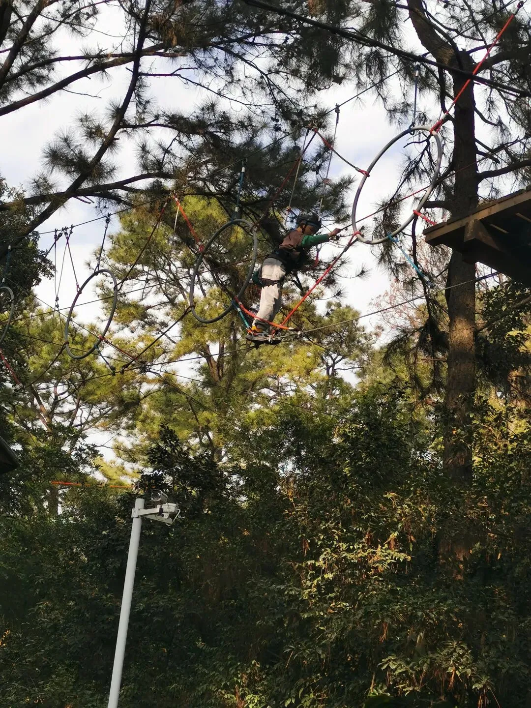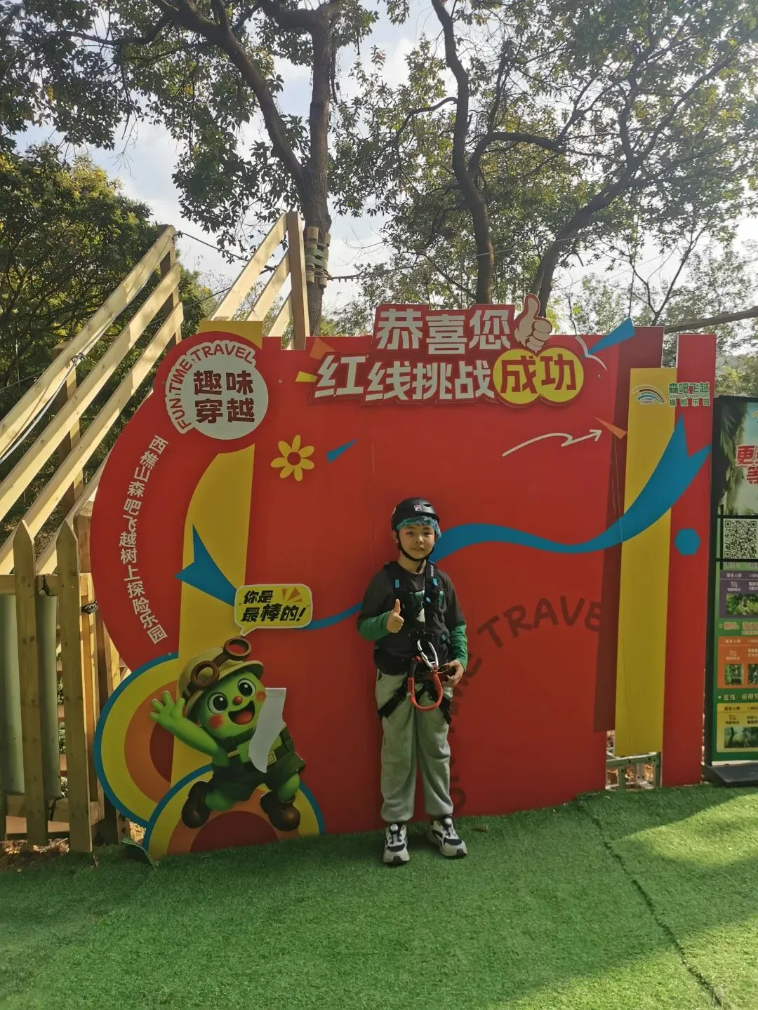 最后来到孩子最喜欢的森吧飞越丛林,树上探险森吧飞越丛林共有8条难度不同路线,各有特色的挑战线路无论你是入门萌新还是硬核高手都能从中找到属于自己的快乐!亲子爆款绿线、进阶挑战红线、天花板难度金线PLUS、丛林蹦极泰山跳等,既可以满足亲子的需求,也很适合想要突破自我、放松解压的你。儿子选择了红线,重重关卡设计复杂:跳蚤网-攀岩跳-酒桶桥-滑索-七星桥-水果桥-长荡绳-十字桥-蜘蛛网-交叉圆木-滑索-小极限-滑索-方形桥-独木桩-滑索。极其考验身体协调性和心理素质,儿子说挑战难度还算适中。