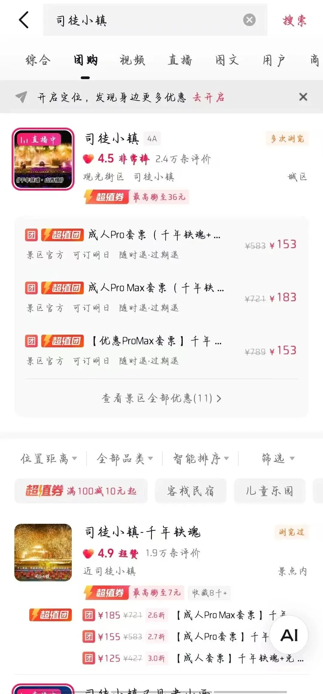 或直接搜索城区相关景区门票产品,即可参与。例如搜索“司徒小镇”