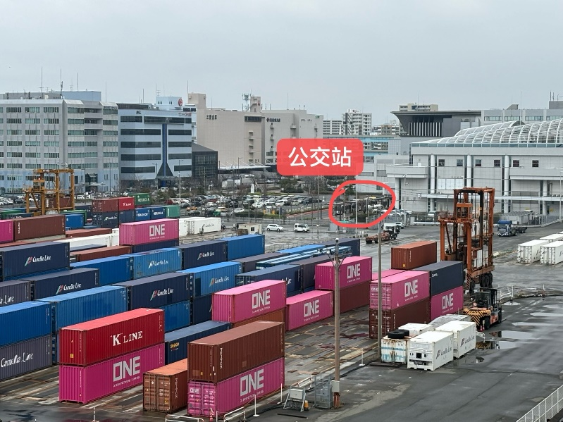 “因为靠港时间太短只有5个半小时左右,如果只打算去博多站或者天神的,就直接打车吧,价格也就1500日元(75人民币左右),开始我们尝试坐公交车,走到福冈邮轮码头公交站(途中红圈的地方),但是实在看不懂怎么坐公交车,所以还是走了一段路才打到车。”