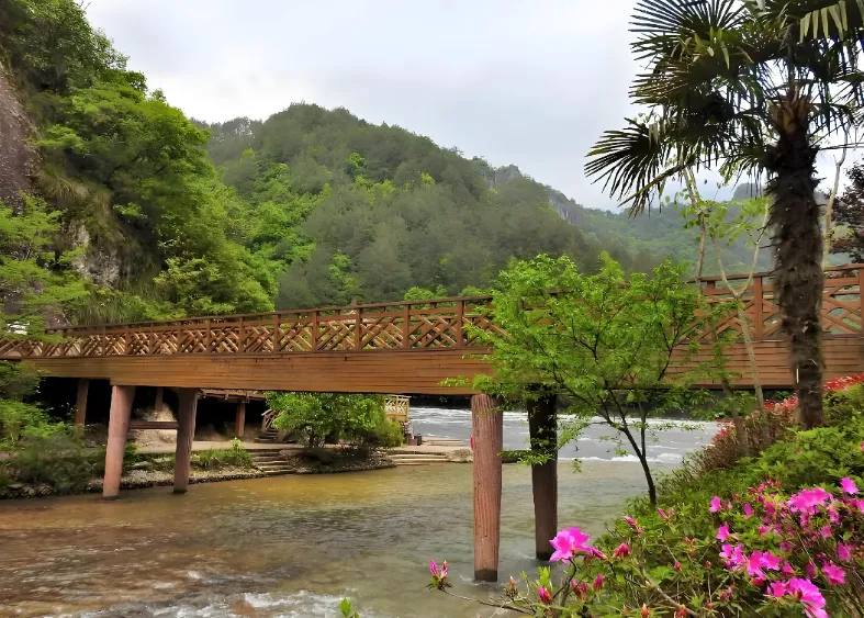 第五站:鸳鸯溪——鸳鸯与猕猴的乐土紧邻白水洋,是全球唯一的鸳鸯猕猴自然保护区。每年秋分至次年清明,数以千计的鸳鸯从北方飞来越冬,溪畔林间还有数百只中华猕猴。走在栈道上,听着鸟鸣和瀑布声,仿佛置身童话世界。门票78元,建议与白水洋一起游览。穿搭建议:防滑鞋,栈道有些湿滑。