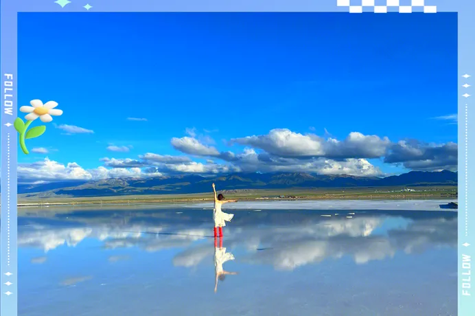 茶卡盐湖在9月有个现象, 就是雨季刚过, 湖面的水位刚好合适, 不深不浅, 深了倒影不清晰, 浅了走上去容易踩到盐壳, 这个时候的水位刚好能形成完美的镜面效果, 你站在湖中间, 天空和湖面的分界线会消失, 你分不清自己是站在天上还是地上, 这种空间感的错乱是其他地方给不了的。