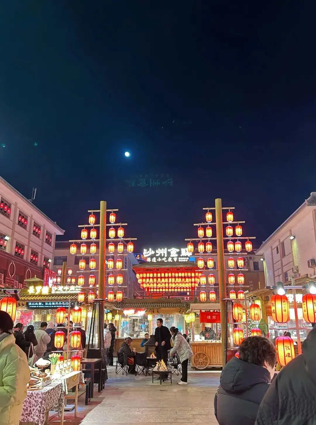 下午五点出门。我们去了敦煌夜市(其实就是一条吃的街),人巨多,我们排队买了烤肉串、驴肉黄面、还有一个不知道名字的馕,每样都没吃多少就饱了。烤肉串真的绝了,20块钱四串,那个香味直接绝杀。小雨咬了一口黄面,做了个生无可恋的表情说"这个太咸了",但还是继续吃,哈哈哈。