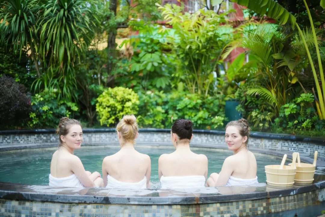步行3分钟达温泉区,62个国医国药汤池可选,地下200米深层水源国医国药温泉泡着解乏,木质感空间自带治愈buff,疯玩一天倒头就睡。