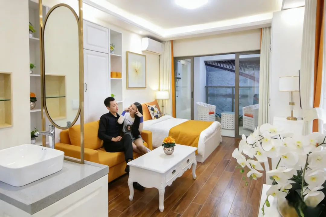 1房1厅空间开阔,大床房柔软舒适,独立客厅可小坐品茶,独立卫生间配套齐全,酒店式保洁服务,干净又安心。