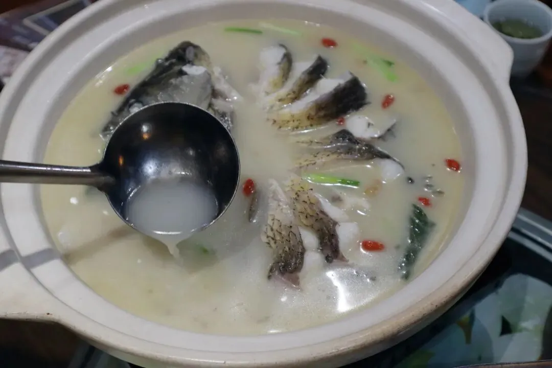 点了一道清水鱼加马金豆干,一共花了120元。这道清水鱼的精华在于白色浓汤,和千岛湖鱼头汤有点像,但是鱼的肉质更细腻,更滑嫩。