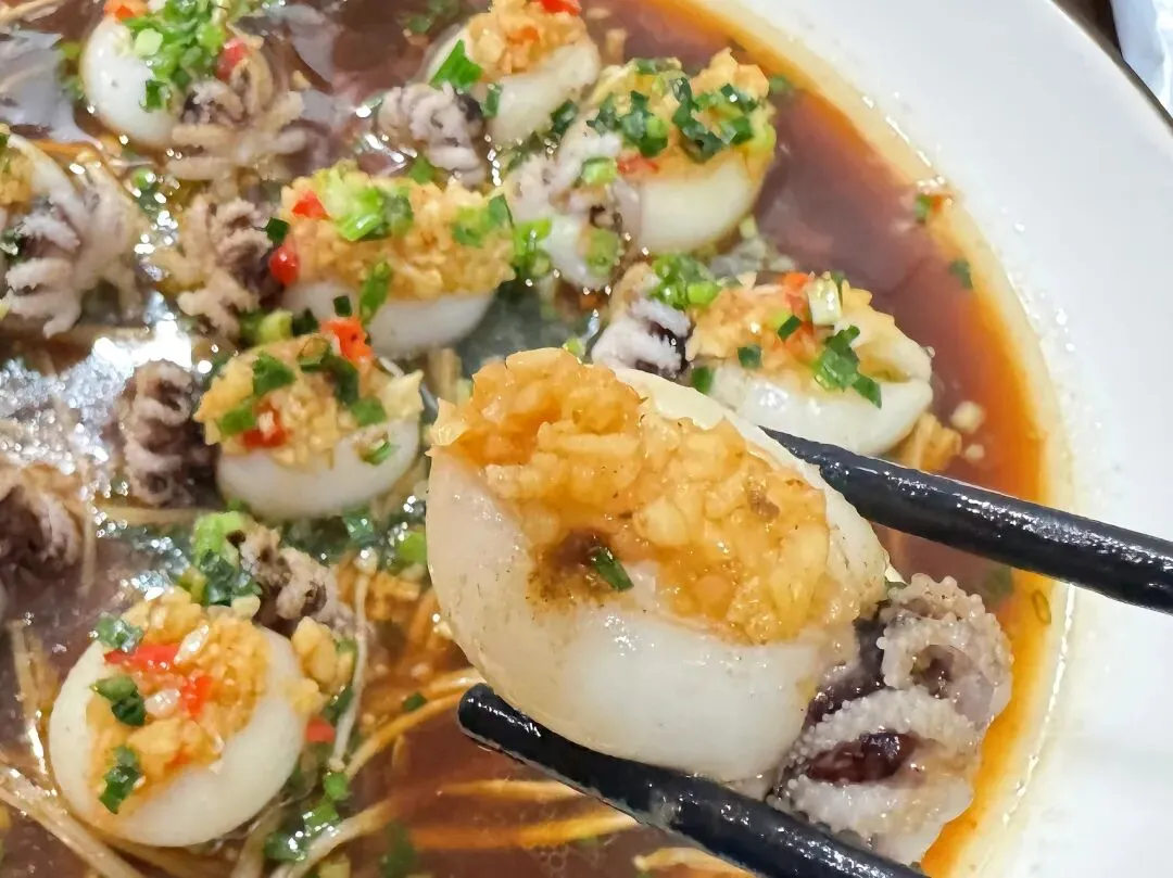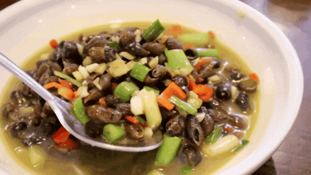 开化青蛳当然是要点的。青蛳外壳呈现墨绿色,细长而紧实;内里的螺肉则呈灰绿色,肉质紧致弹牙,入口鲜甜清爽,并带有一丝独特的微苦回甘,这抹苦韵恰恰是其风味的点睛之笔,让鲜味更有层次而不单调 。下酒也是绝配。