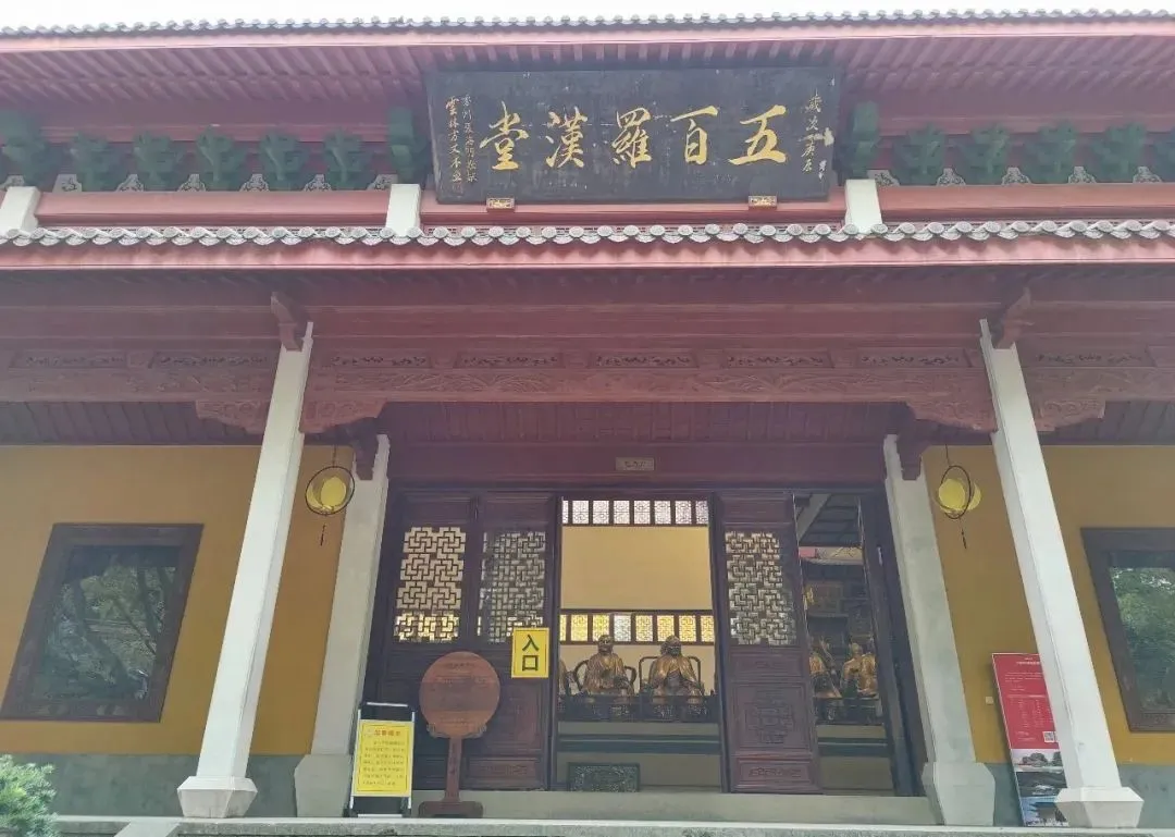 天王殿→大雄宝殿(24.8米高樟木佛像,禁拍)→药师殿(琉璃灯阵)→五百罗汉堂(寻第295尊手持微缩灵隐寺的罗汉)。