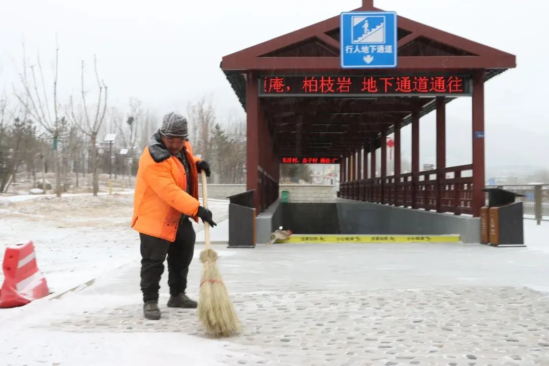 图说五台山|五台山景区降瑞雪 环卫工人清雪保安全
