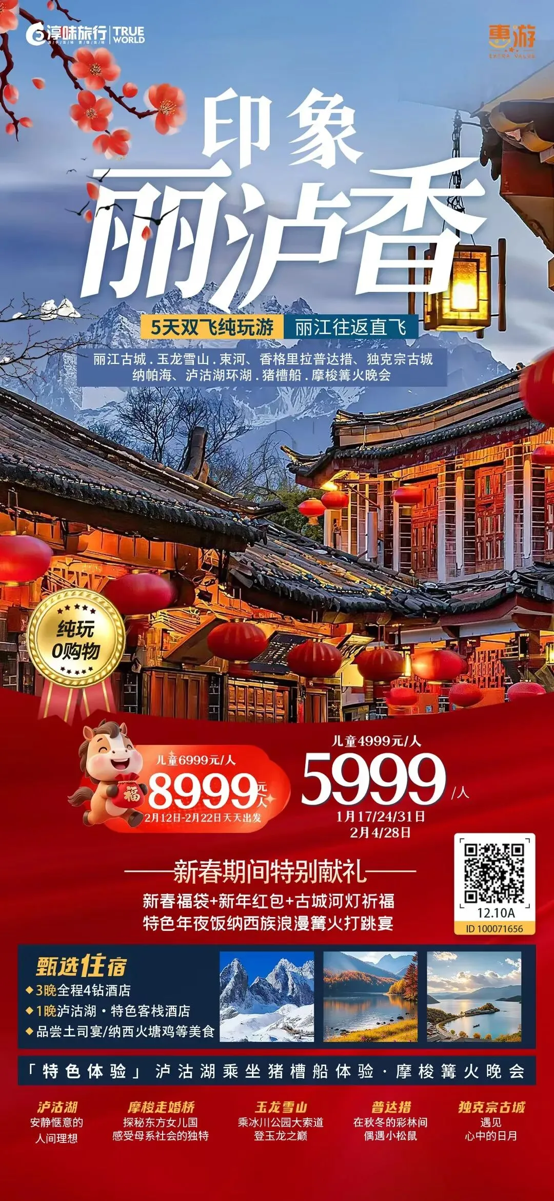 印象丽卢香 5天双飞纯玩游丽江往返直飞