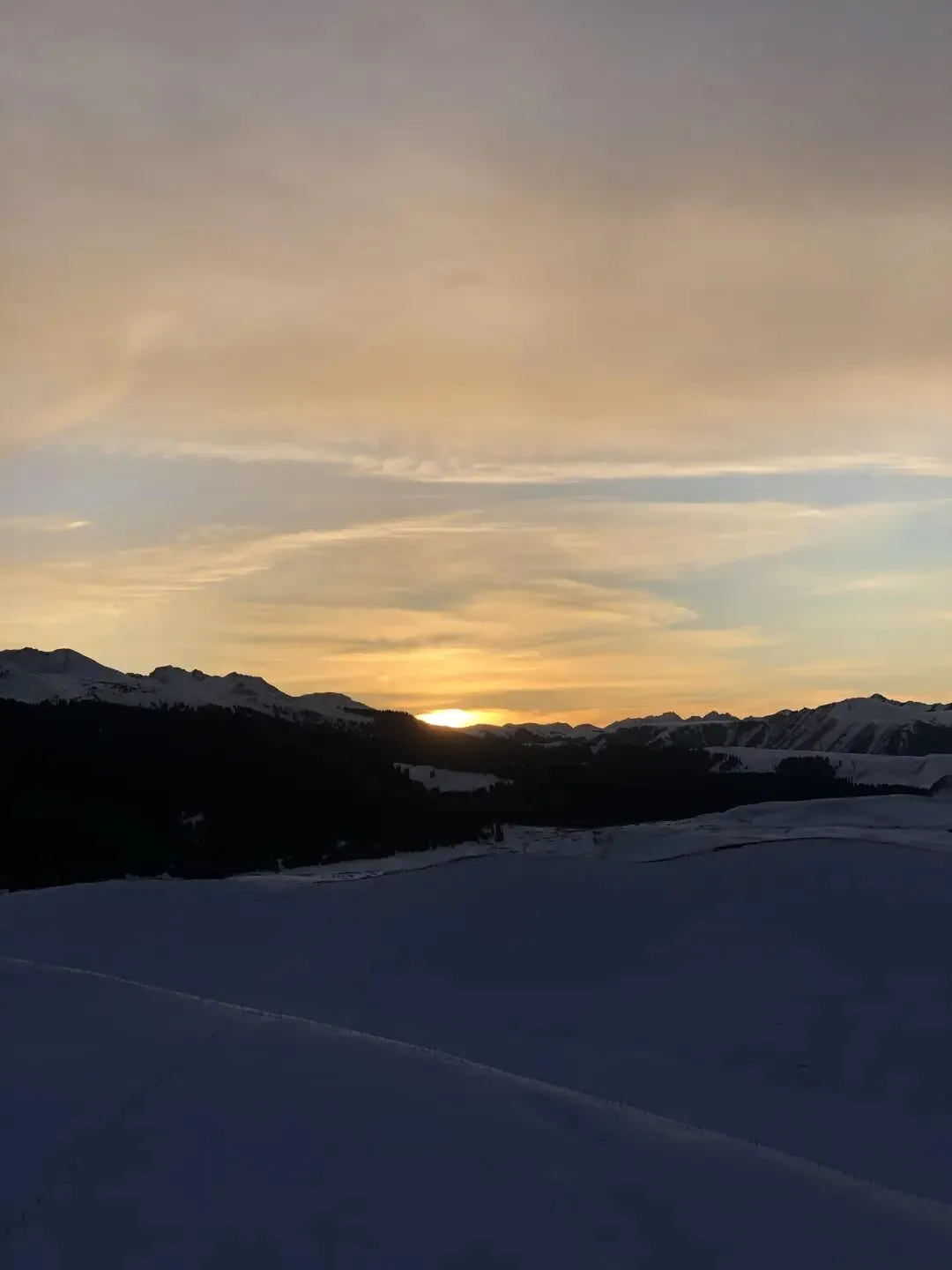 真心不建议自驾!要翻过三座大山,部分路段没有护栏,路况超差,但是沿途的雪景真的绝了!在后山蹲到了绝美日落,橘色余晖洒在雪地上,那种震撼永生难忘!
