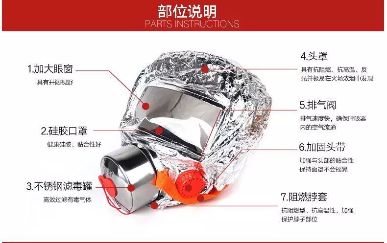 一旦火警发生,请保持镇定,并戴上防毒面罩