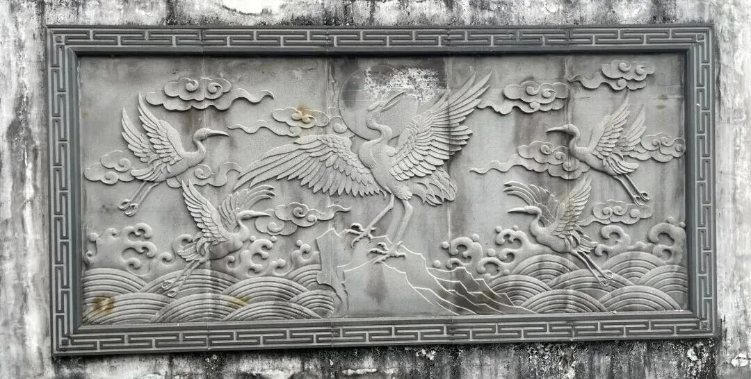 县衙大门端正古朴,门柱上的楹联颇具智慧和深意:“定三尺法无法何来善政,安百姓心民心即为官箴”。门前两侧斑驳的墙上各有一幅精美的雕刻,好像是仙鹤和麒麟,类似官员官服上的图案。