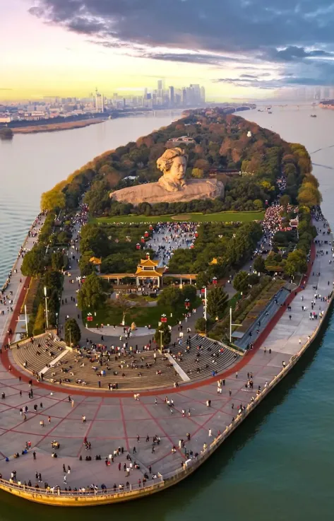 一座洲,一段历史,一份情怀。站在青年毛泽东雕像前,感受那份”问苍茫大地,谁主沉浮”的豪情。湘江从身边流过,晚霞将整个橘子洲染成金色。在这里,历史与现代交织,诗意与力量碰撞。