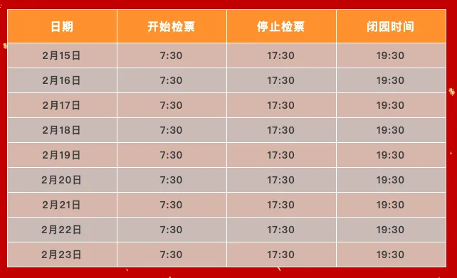 一、春节假期期间2月15日至23日(农历二十八至初七)延时惠民开放,博物院开始检票时间提前至7:30,停止检票时间推迟至17:30(闭园时间为19:30)。