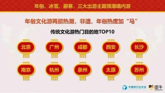 同程报告还补充,在海南的高端酒店预订中,95后和00后客群占比显著提升,他们的消费力不容小觑。携程报告显示,在避寒游目的地的年轻客群及“新银发一族”(75后)占比合计提升超过10个百分点。 与之相对的,是更加洒脱的银发一族。他们不再仅仅是家庭游的附属,而是重要的悦己消费主体。途牛报告显示,南美多国连线游、极地邮轮、香草四国(马达加斯加、毛里求斯、塞舌尔、留尼汪)等长行程、深体验的产品预订中,年长者占据了更高的比例。 在下沉市场,途牛和同程都观察到三线及以下城市的出游需求正在快速释放。途牛报告中指出,宜宾、德宏、江门、湘潭、玉林、菏泽、邢台、保山、焦作、鄂州等城市成为客源地黑马。 同程报告发现,大量返乡人群在探亲之余,热衷于在省内进行短途微旅行,今年春节开封市、洛阳市、黄山市、宣城市、上饶市等地酒店民宿、景区门票等预订火热,来自省内的客源占比已接近4成。 春节旅游目的地呈现南下避寒与北上冰雪双线并行的明显特征。途牛报告显示,境内游热门目的地方面,广东、云南、海南、江苏、黑龙江等南北省份预订热度排名靠前。 这背后是清晰的人群流动:冰雪旅游的客群中,有接近80%来自南方,特别是北上广、江浙地区,他们撑起了哈尔滨、长白山等地的热度。 与此同时,反向的避寒暖阳之旅同样规模庞大,途牛报告显示,南下避寒游用户中,来自东三省及京津冀地区的用户占比超五成,江浙沪地区的用户占比接近30%。众信旅游的报告印证,海南、云南及东南亚海岛持续吸引客流,而新疆、吉林与境外的俄罗斯、北欧则成为冰雪主题的热门选择。 携程春节国内黑马目的地前十榜单中,汕头(增长186%)、揭阳(162%)、潮州(135%)领跑,且前十名全部被南方城市包揽。三亚、景洪、海口等传统避寒胜地也保持高位增长。平台用户关于春节的提问中,涉及南方温暖目的地的占比相较去年春节前增长56%。 然而,真正定义今年春节趋势变化的,并非这些传统热门目的地本身,而是旅行者们探索方式的深刻转变。他们不再满足于省会或枢纽城市的常规景点,而是怀着对在地文化与真实年味的渴望,将脚步深入腹地。这直接催化了县域目的地的集体崛起。 途牛观察到,安阳、德宏、阿勒泰、普洱、潮州等低线城市预订热度显著增长。同程旅行特别点出,德宏、迪庆、红河等宝藏小城被更多游客“看见”。而马蜂窝的“年味儿”热门目的地榜单,汕头、泉州、景德镇、自贡、漳州、潮州、普洱等地赫然在列。 “年味抢客潮”在全国上演。同程旅行报告敏锐捕捉到,广东、福建、四川等多地文旅纷纷围绕年俗打造核心竞争力。 广东、福建、四川等多地文旅纷纷围绕年俗打造核心竞争力。广东省主打岭南限定年俗,启动“2026请到广东过大年”系列文旅主题活动,带动全省春节酒店预订热度同比激增169%,其中清远涨幅高达342%。 四川则以自贡灯会为核心,叠加三星堆新年大典、峨眉山冰雪温泉季等新春文旅活动,春节国内机票预订热门目的地TOP10中,成都排在第4位。靠近自贡中华彩灯大世界的多个酒店显示房源紧张,春节价格较平日上涨超一倍。