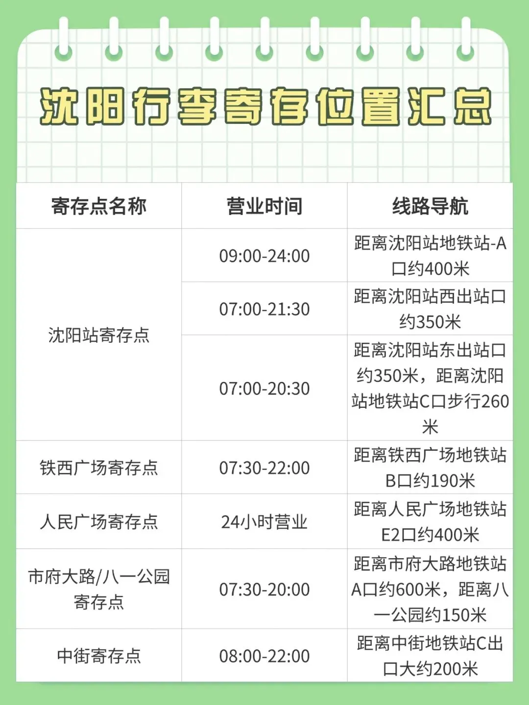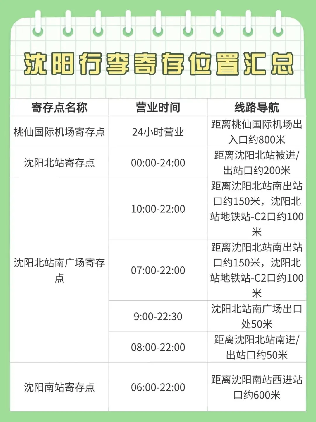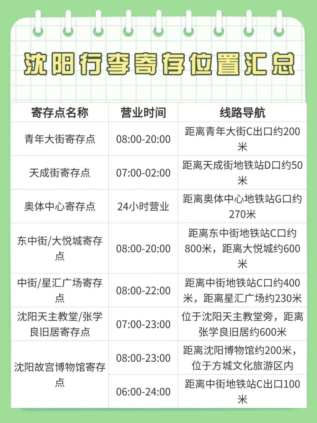 来沈阳玩的宝子们,想吃锅包肉、逛故宫、打卡张学良旧居,却烦恼行李无处安放?别担心!这篇笔记汇总了沈阳市区及景点周边的寄存点,附上详细营业时间和寄存位置指引,存完包直接开玩,落地即轻松开启旅程~