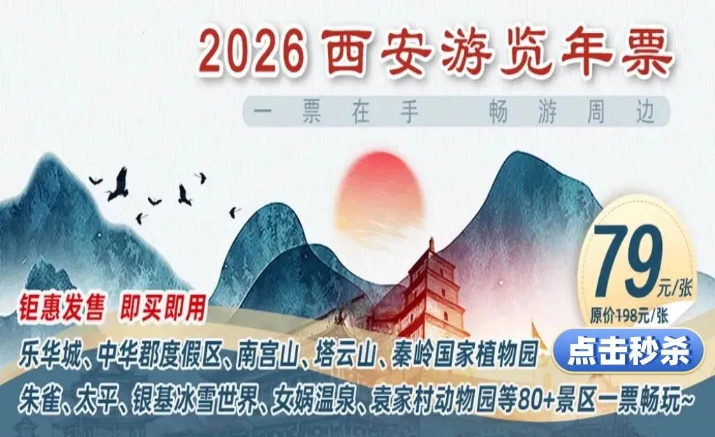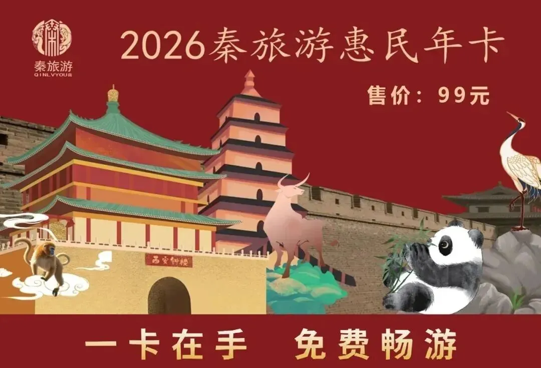 寒假旅游神器!全省56家景区!仅99元「2026秦旅游惠民年卡」秦岭野生动物园、翠华山、白鹿仓白鹿原影视城、太平朱雀、塔云山秦岭植物园!