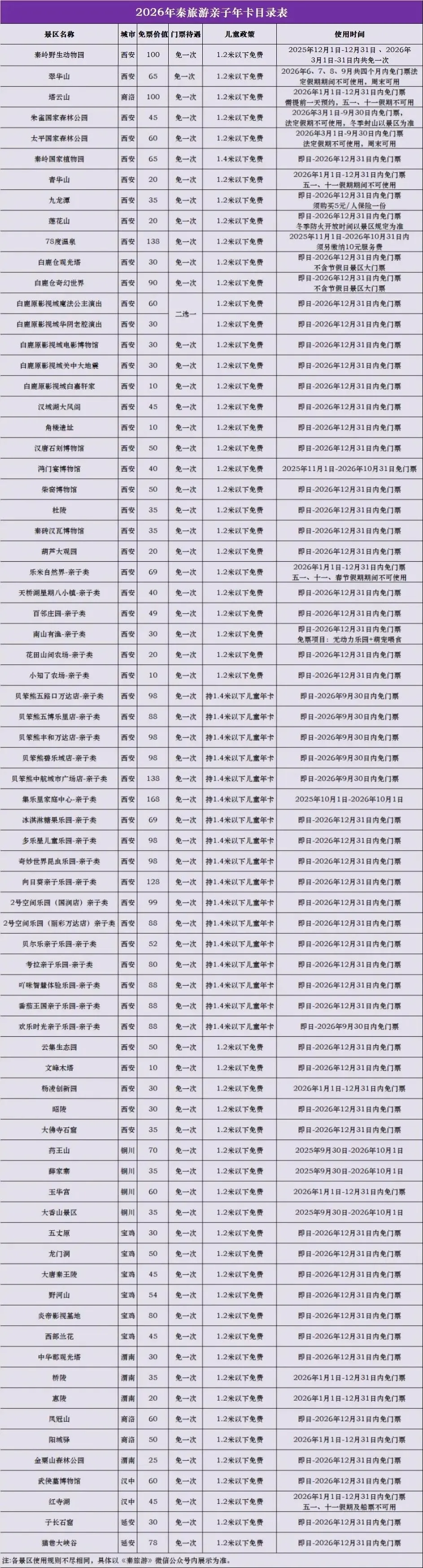 包含:2026秦旅游亲子年卡单人卡1张(适合儿童使用)