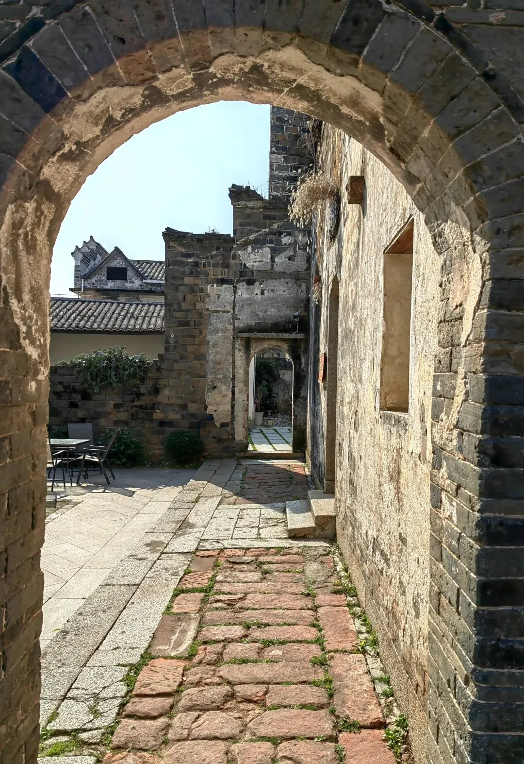 拍照要早。阳光一斜,屋檐的影子很美,人也少。脚下青石滑,鞋底得防滑,摔一跤可就不文艺了。