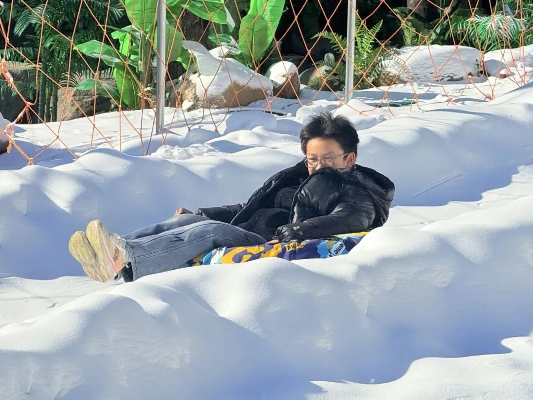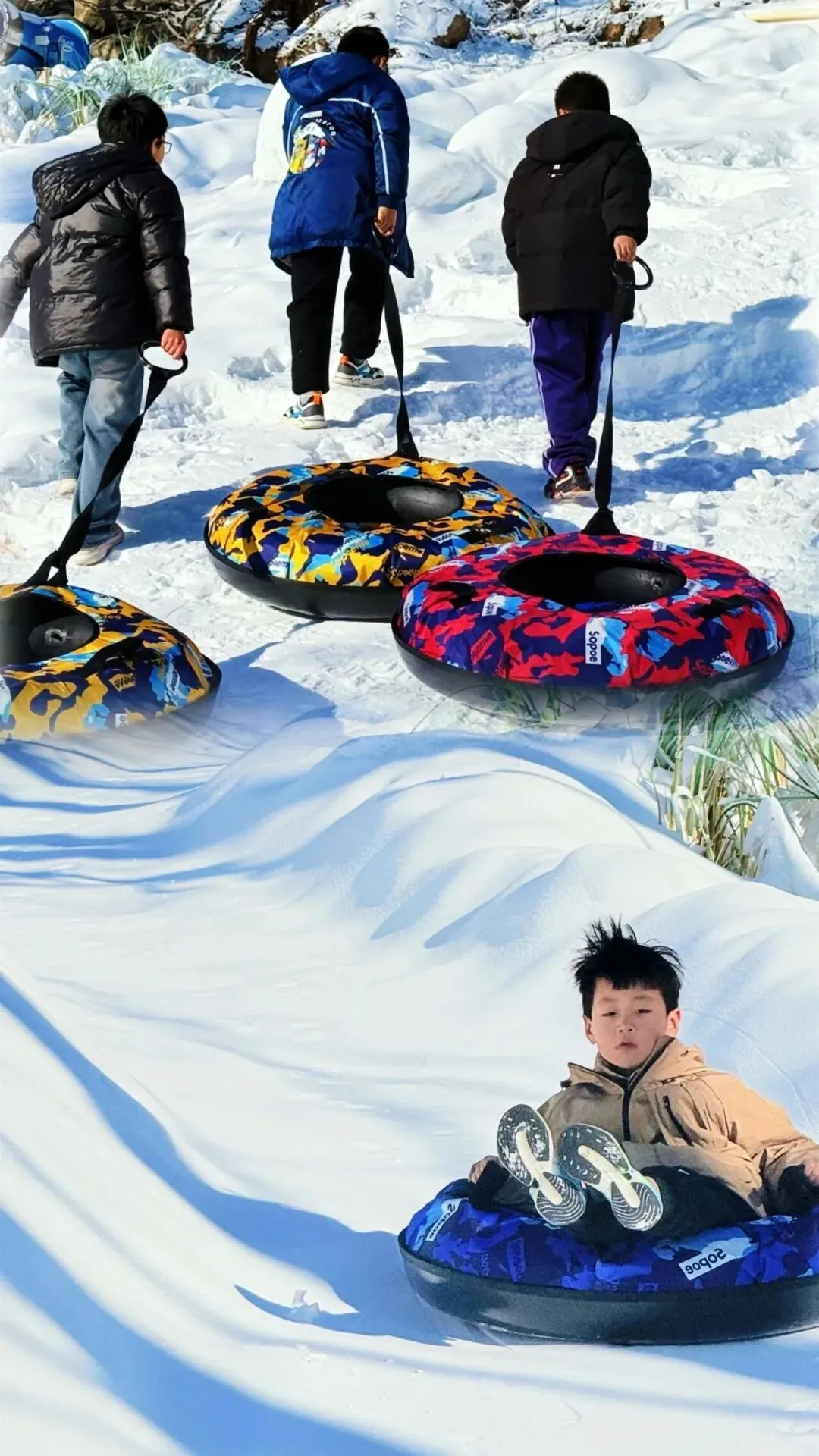 滑雪道位于景区花海上方区域,且周边视野开阔,能为游客提供优质的冰雪运动环境。景区据此科学规划建设多坡度雪圈滑道,适配不同年龄段儿童体验,滑行过程平稳顺畅,兼具趣味性与安全性。