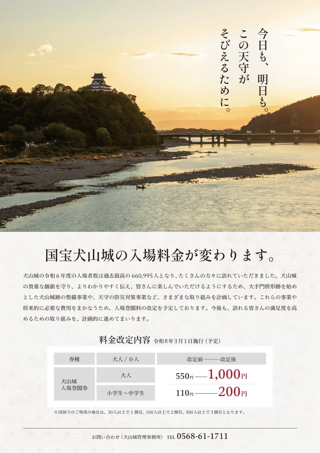 犬山城:3月起,成人门票从550日元涨至1000日元,涨幅接近一倍