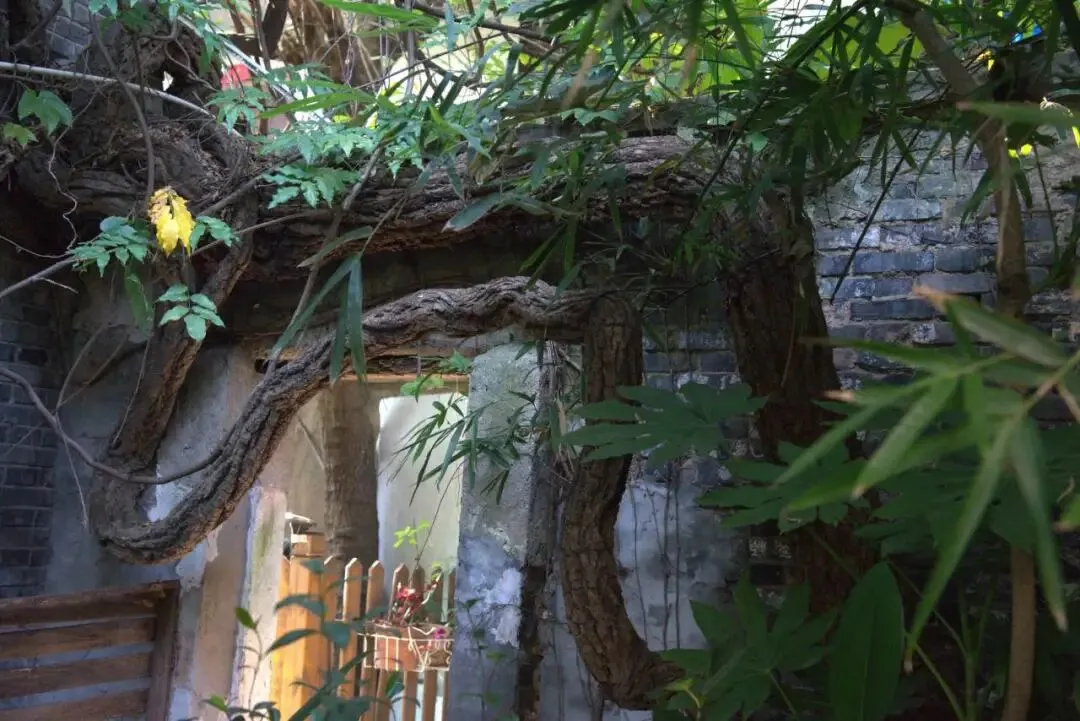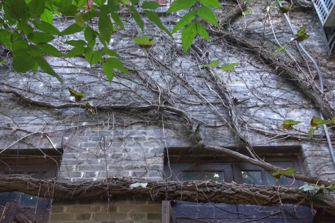走近孙家花园,最先映入眼帘的是那面爬满藤蔓的青砖墙。深褐色的老藤如虬龙般盘绕在灰黑色的砖墙上,有的粗壮如臂,蜿蜒伸展,将岁月的褶皱刻进粗糙的树皮;有的纤细如丝,垂落而下,在风里轻轻摇曳。阳光穿过枝叶,在墙面上投下斑驳的光影,明暗交错间,仿佛时光在此凝固。这些藤蔓不仅是自然的装饰,更像是花园忠实的守护者,用层层叠叠的绿意,将建筑的沧桑与生机完美融合。