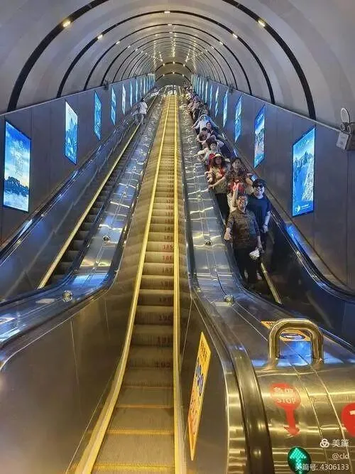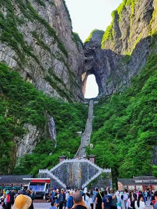 天门山城市边上就能上山,看着方便,真排队能排两三个小时,索道上去再等穿山扶梯,层层排队像接力。