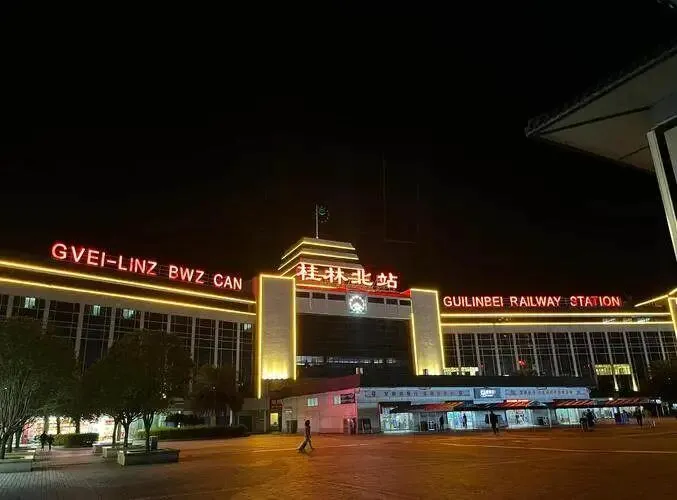 到桂林站比桂林北站更接近老城,打车短,地铁少换乘,晚上吃粉走穿山桥周边更像当地日常。