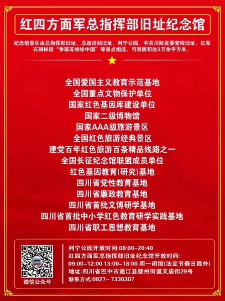 版权说明:红四方面军总指挥部旧址纪念馆微信公众平台发布的图文作品均为版权作品,仅供订阅用户阅读参考。其他纸媒、网站、客户端、微信平台等媒体或个人如需转载使用,请联系我们获得授权,并注明“红四方面军总指挥部旧址纪念馆”。谢谢合作!
