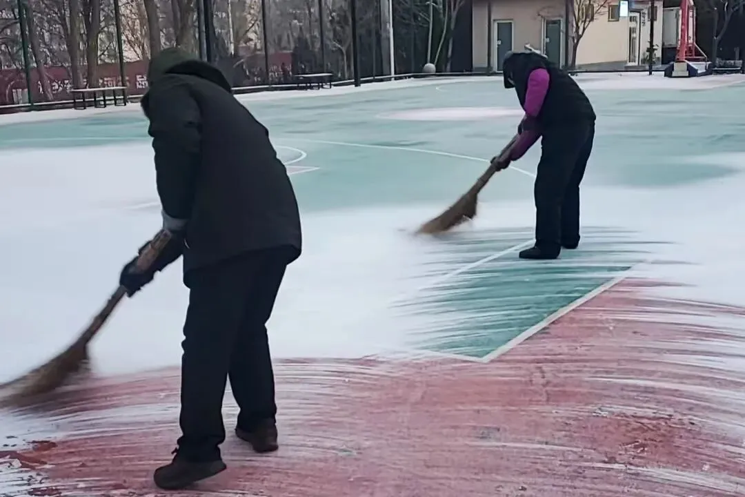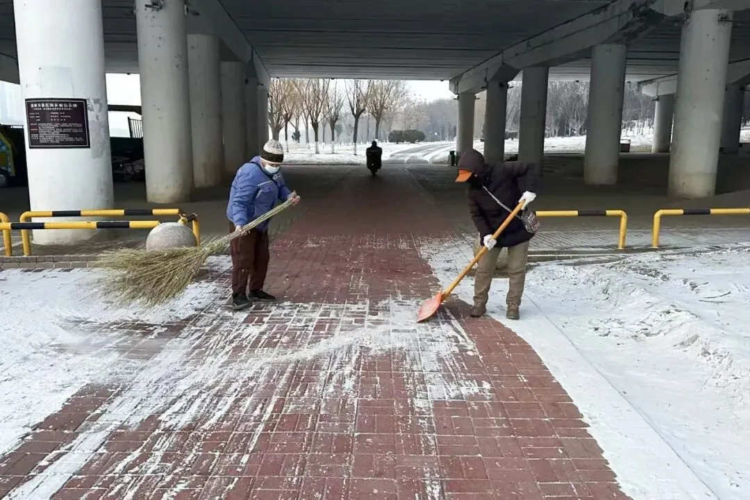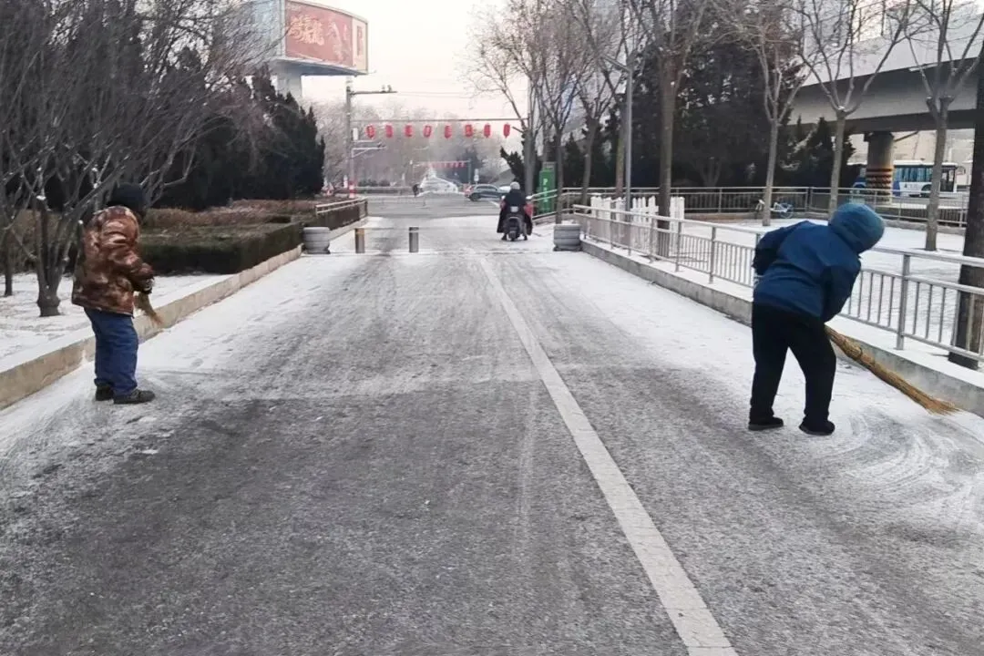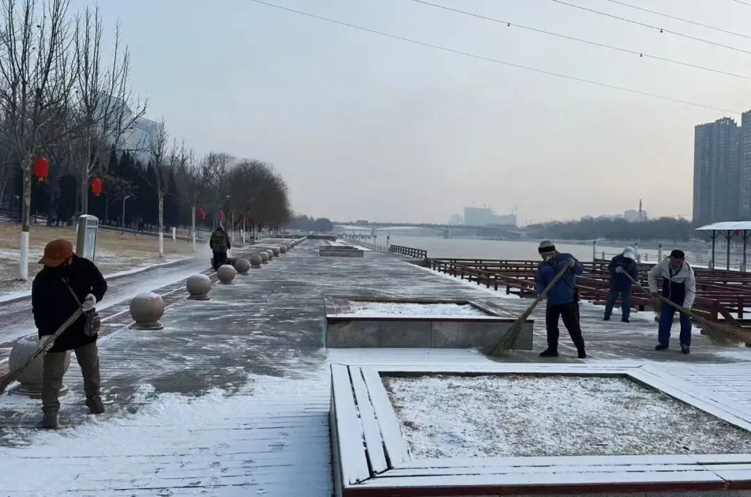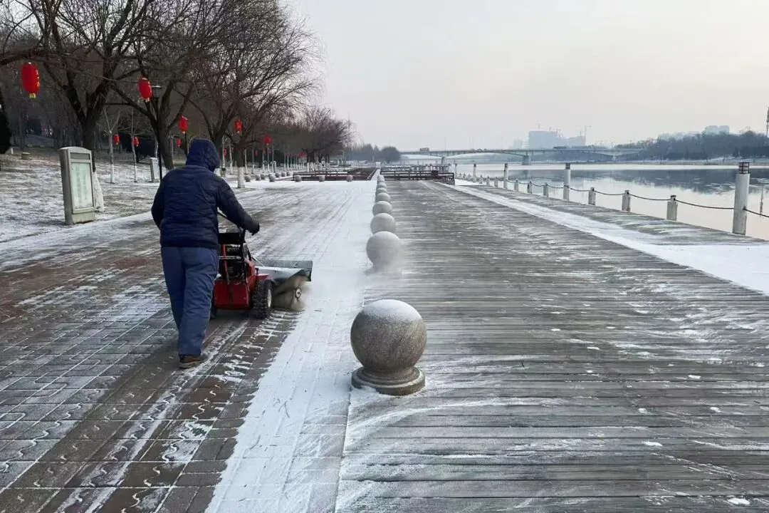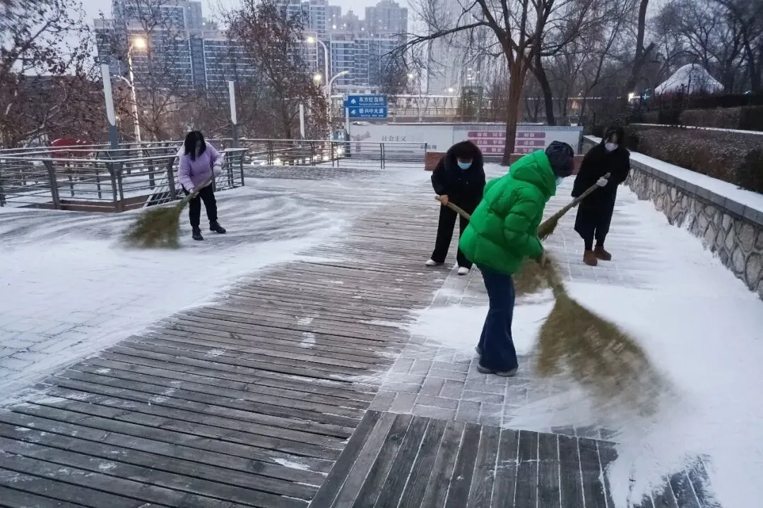 此次清雪工作严格遵循“机械为主、人机配合,先重点后一般”原则,科学划分责任区域,明确分工、协同作战。提前备好扫雪车、扫帚、冰铲等物资,天刚破晓便全员集结,奔赴各责任点位。机械作业组驾驶铲雪车,重点清理景区主园路、出入口及停车场积雪;人工清扫组紧随其后,对步道台阶、观景平台、绿植周边等机械无法覆盖的区域进行精细化清扫。