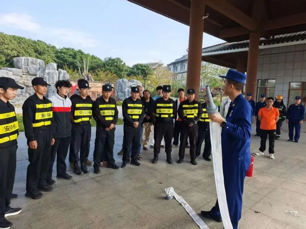 本次演练以“强化意识、提升技能、保障安全”为目标,通过专业人员的集中理论培训与标准化的实操训练,全面提升景区火灾预防与应急响应能力,为春节运营筑牢安全基石。 1、理论培训:消防人员系统讲解了火灾隐患排查、消防器材规范使用及应急疏散流程等关键知识,夯实员工的安全理论基础。 2、实操训练:参训员工分组进行灭火器实操、消防水带连接使用等标准化技能训练,并模拟火情开展应急响应与协同处置,确保技能掌握到位、反应迅速有效。 通过本次演练,景区员工的消防安全实操能力与团队协作处置水平得到有效强化。
