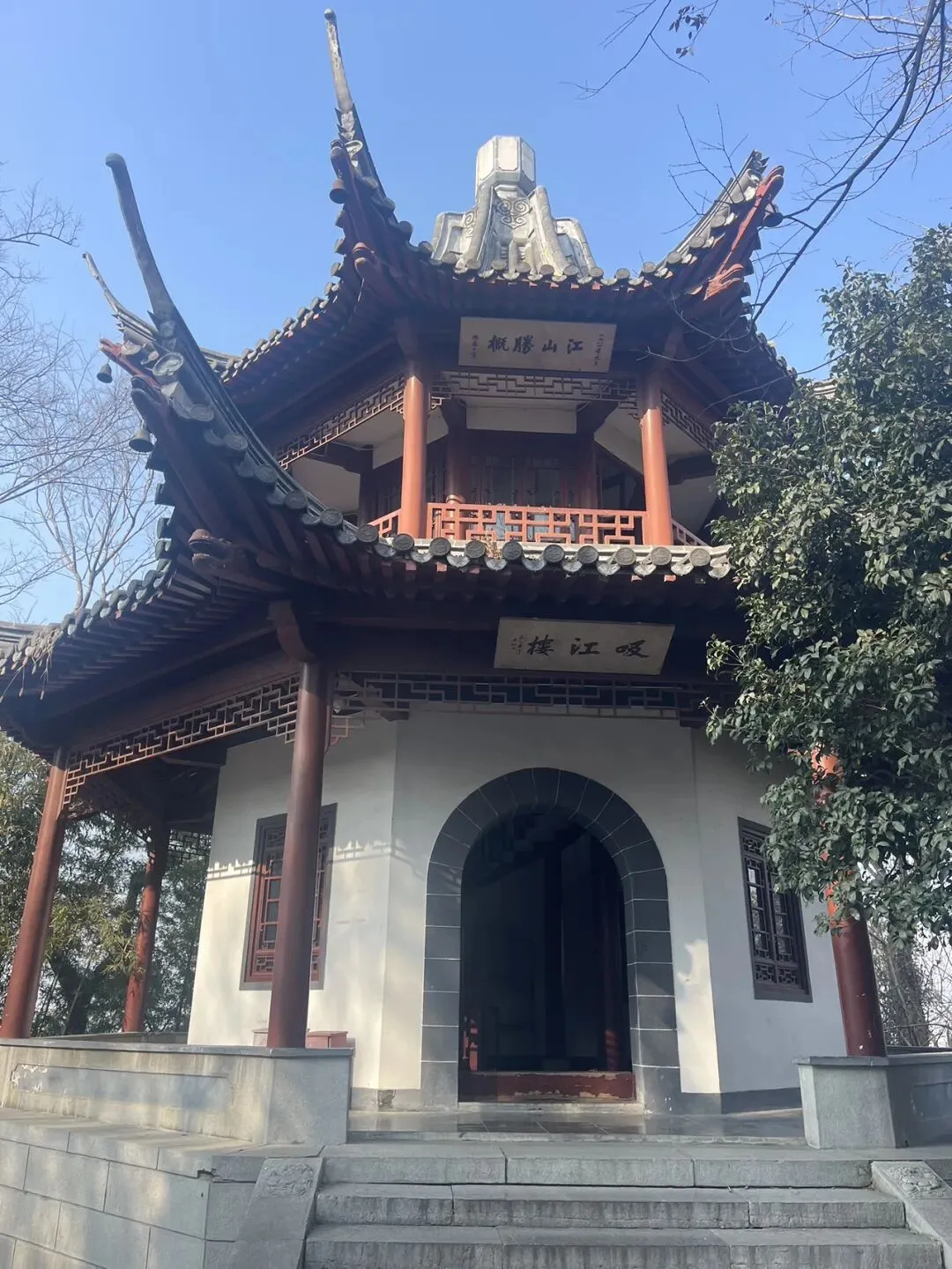 登岸先逛定慧寺,古刹禅意悠悠,随后走入碑刻博物馆赏墨韵,又逛盆景园观精巧景致,行至东麓见古炮台残垣,岁月厚重感扑面而来。一路拾级而上,途经吸江楼,山风送爽,步履不觉疲惫。