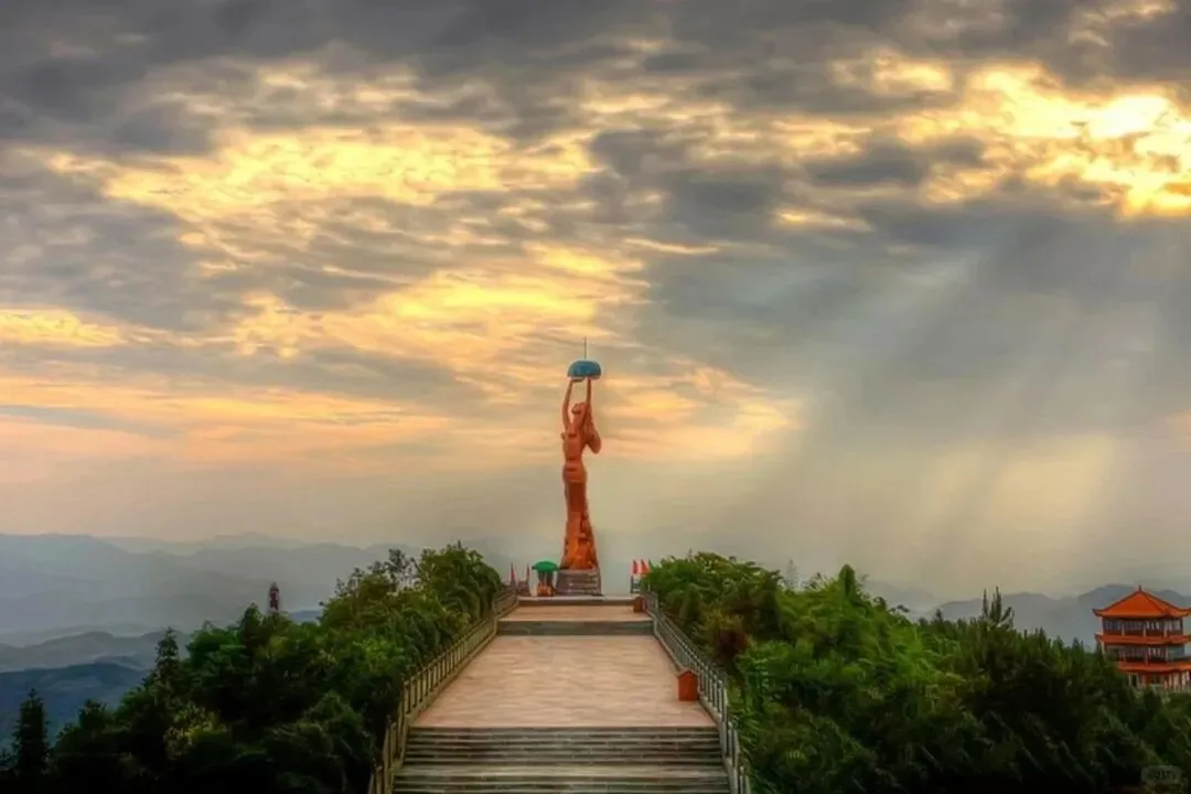 人文不缺位:山巅女娲铜像、祭坛、女娲宫,细说女娲造人补天传说,看景还能学文化,一举两得。